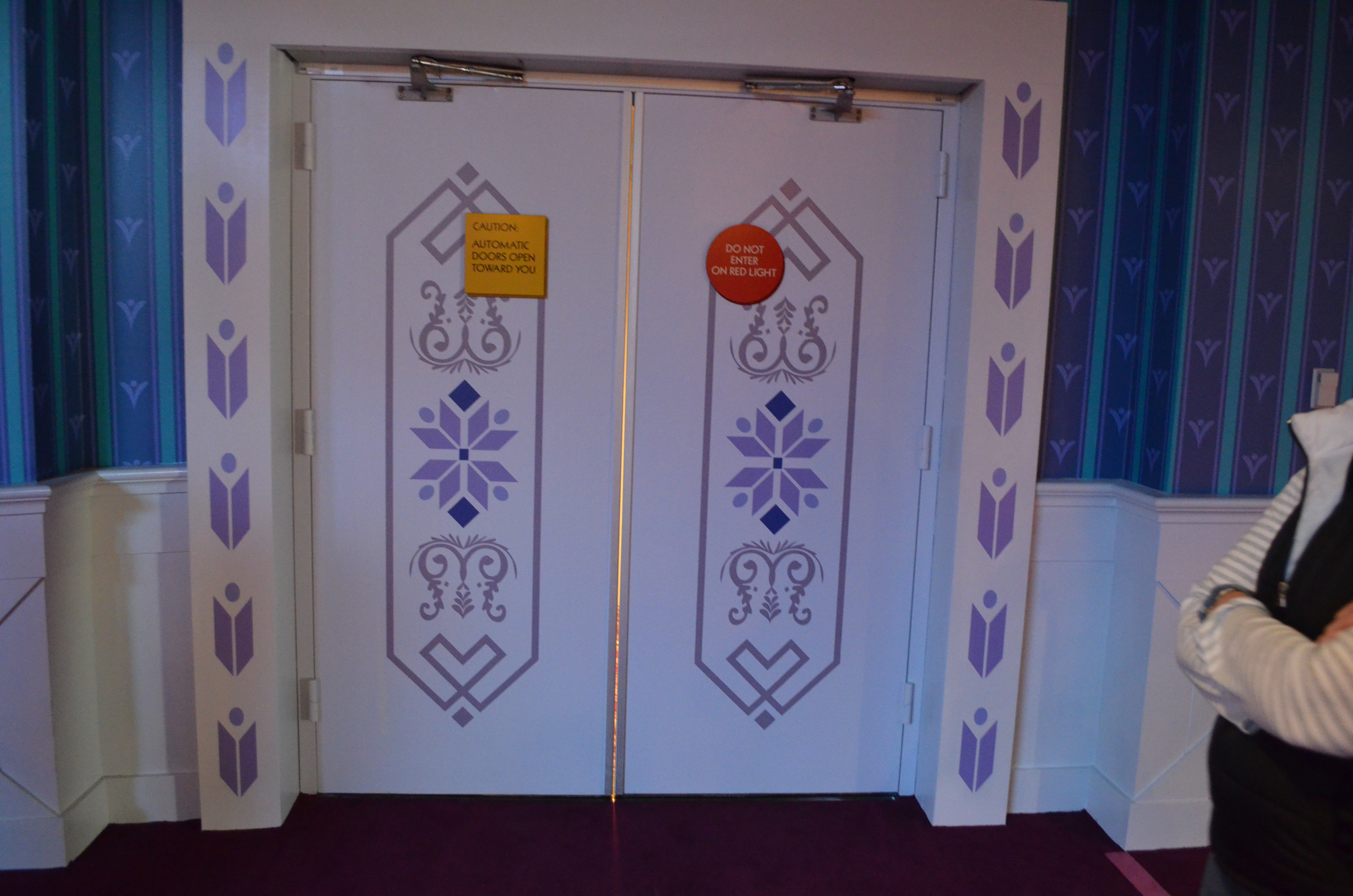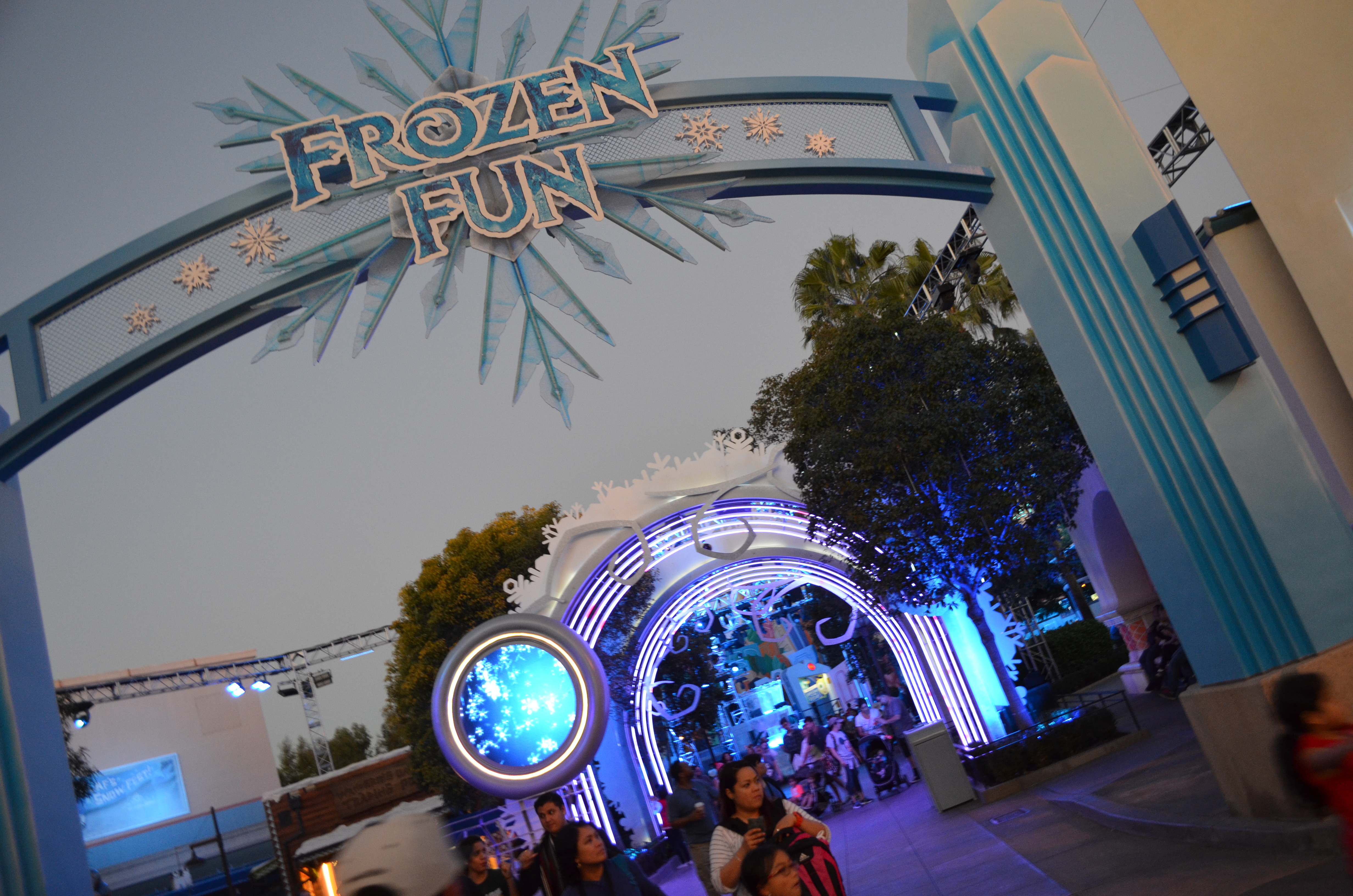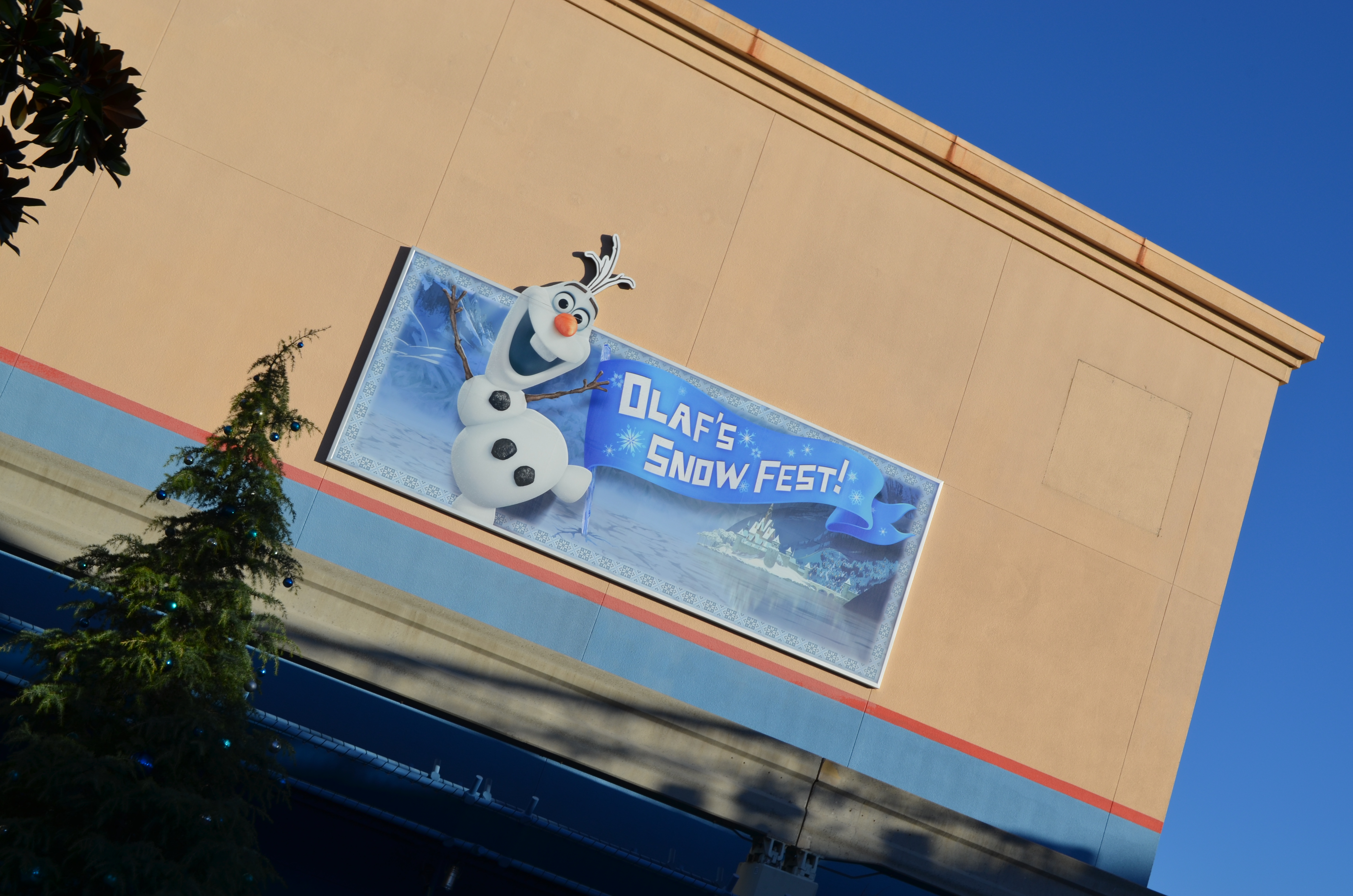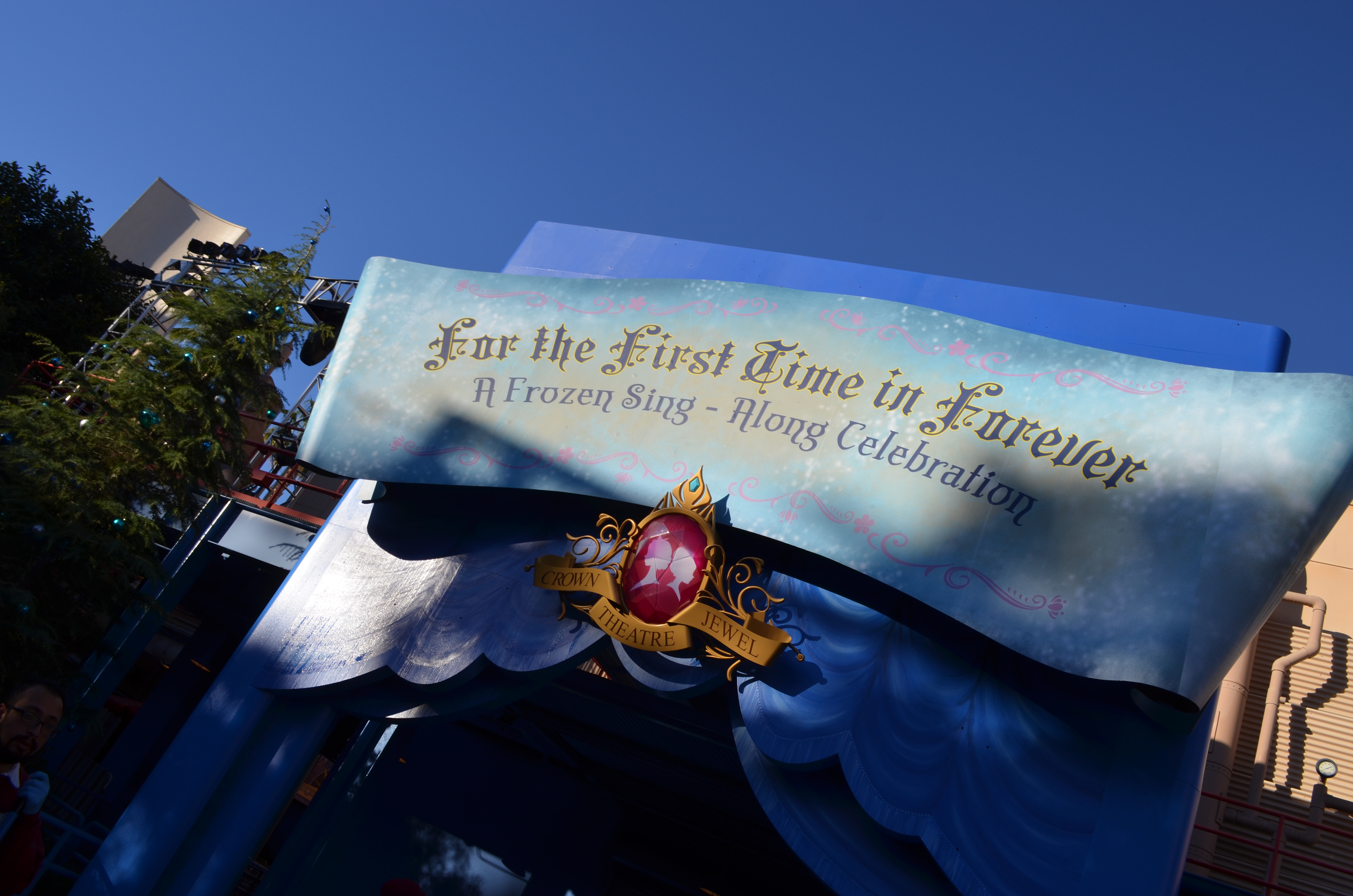 Frozen Fun has recently soft opened in multiple phases this past week at California Adventure, with a major one taking place yesterday. The Muppet Vision Theater closed a week few weeks ago and has now reopened as For the First Time in Forever: A Frozen Sing-Along Celebration. The Freeze the Night dance area and it’s offerings opened earlier this week, so this won’t be mentioned too much. The Animation Building across the street is now filled with a Frozen meet and great for Anna and Elsa, and a show teaching you how to draw Olaf. The element currently not opened is the Olaf’s Snowfest that will be housed in Stage 17. Many managers and show producers where out and about all day, including Mary Niven, VP of Disneyland Park.