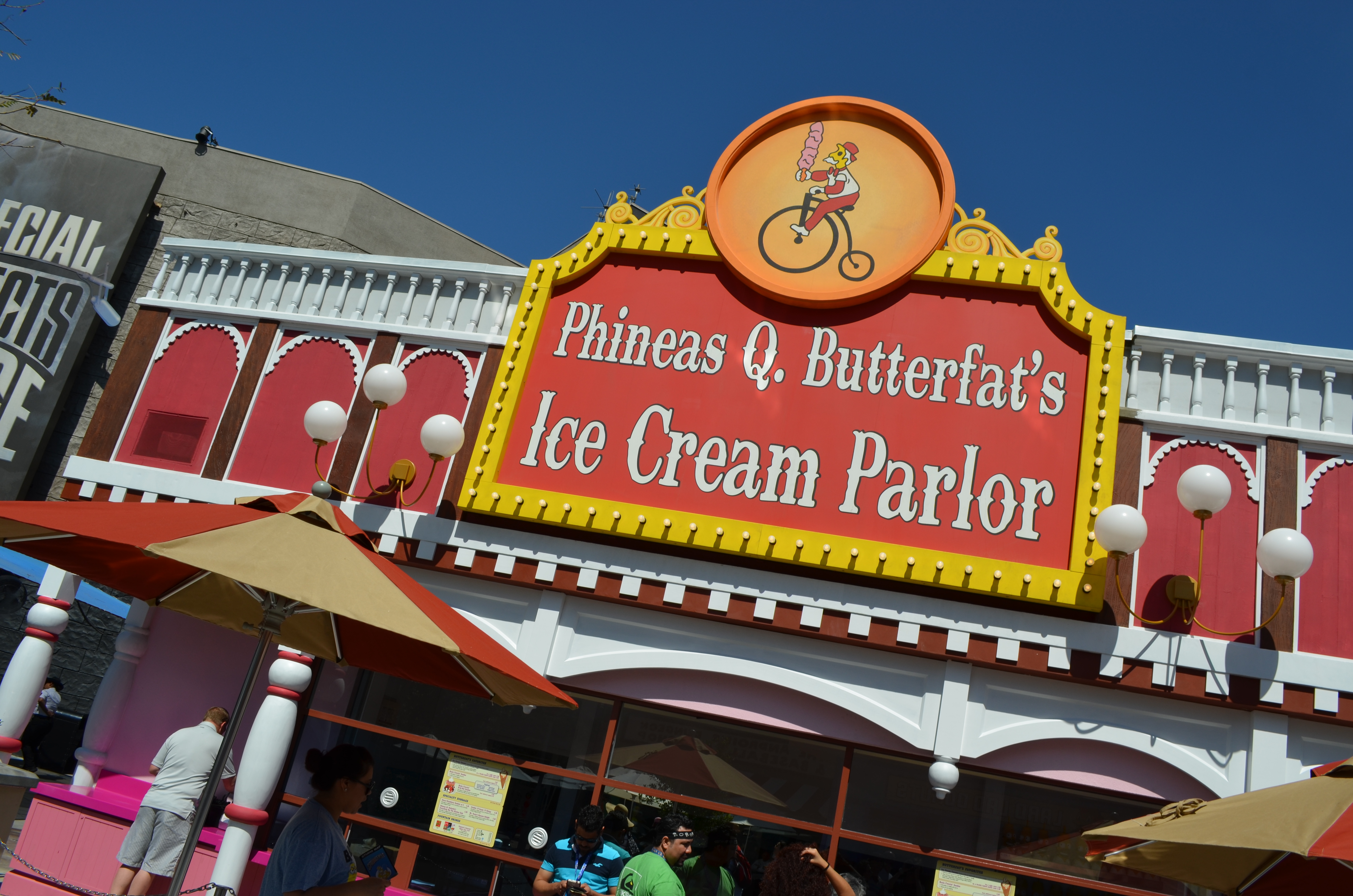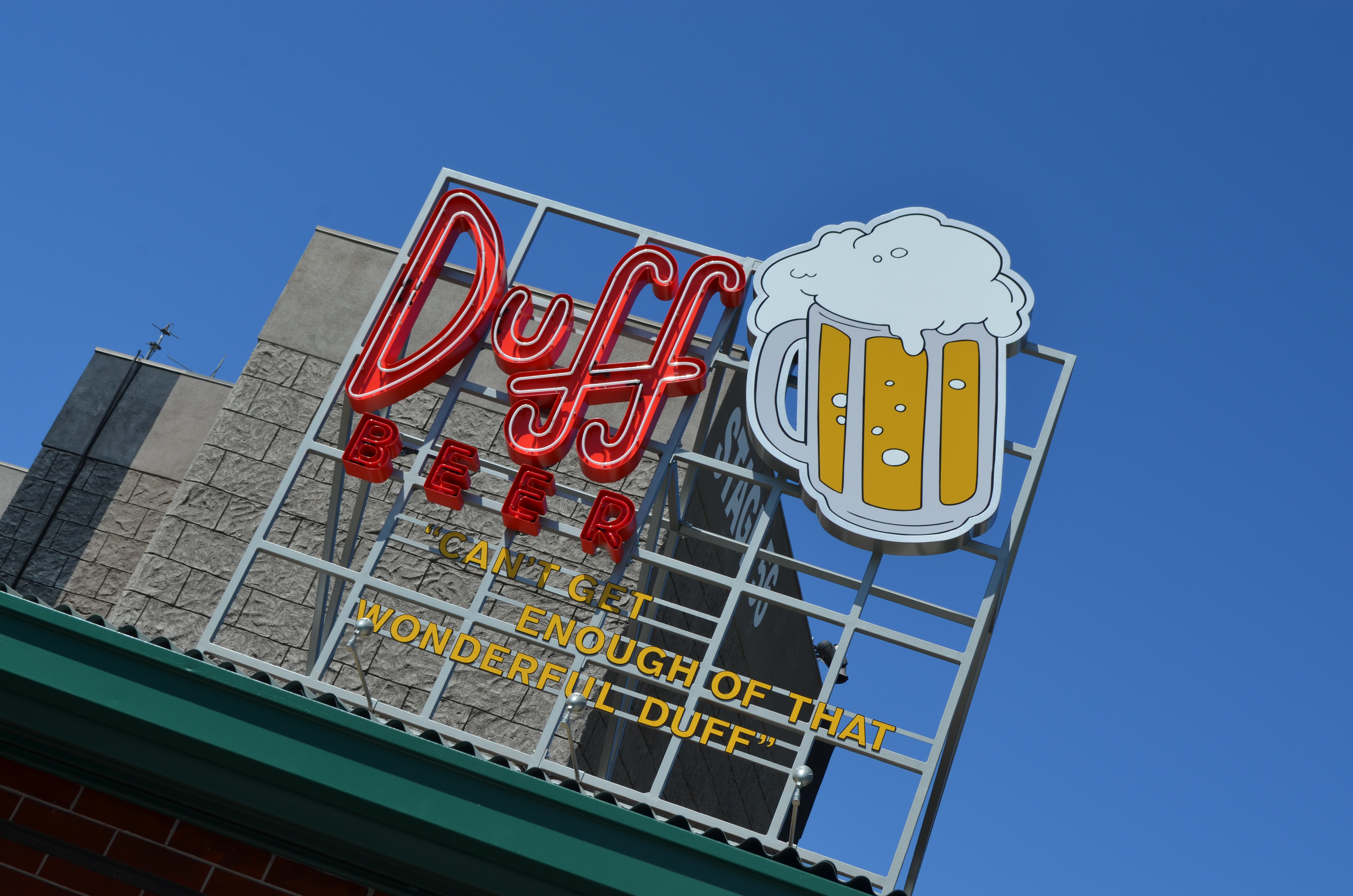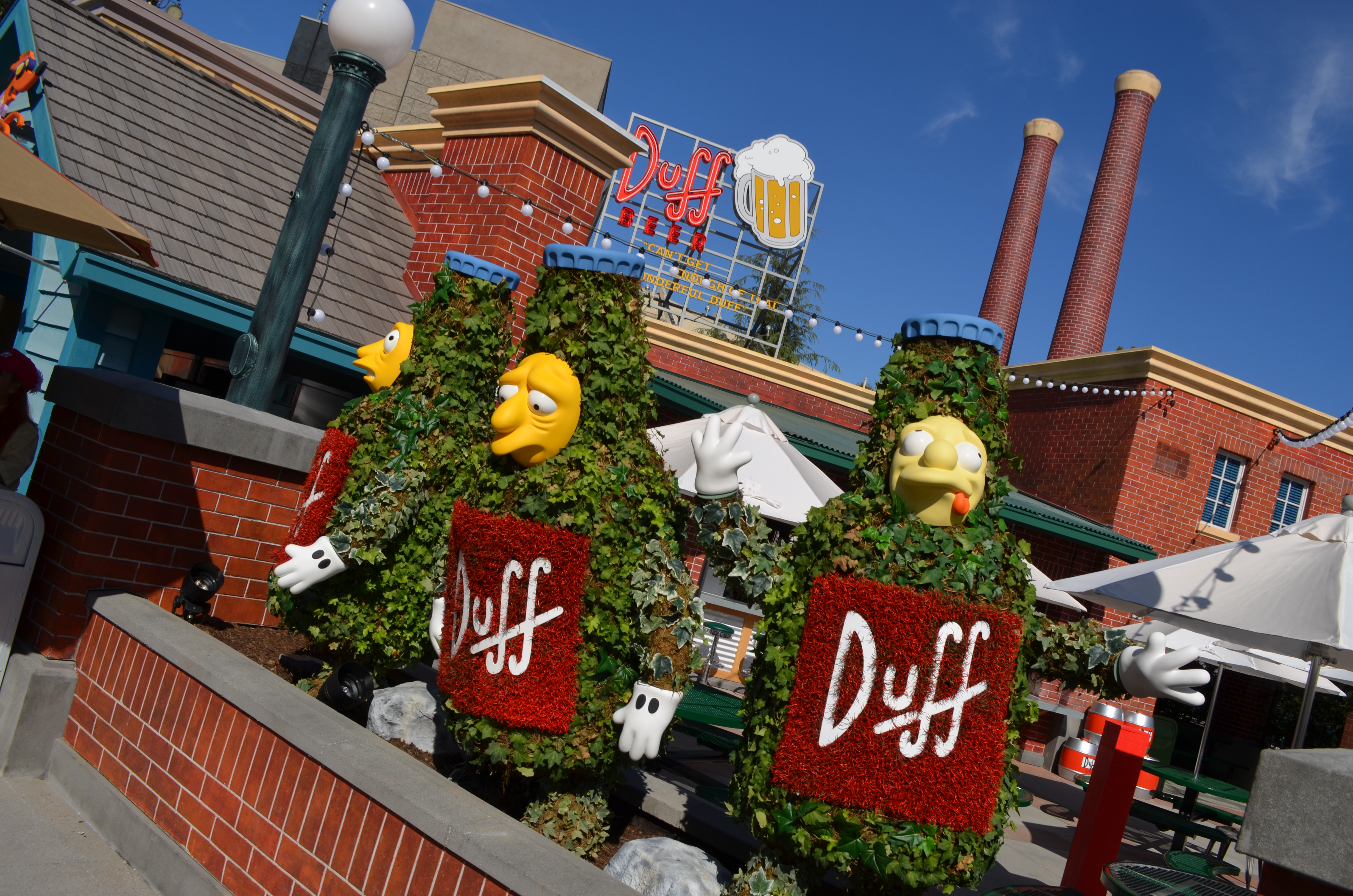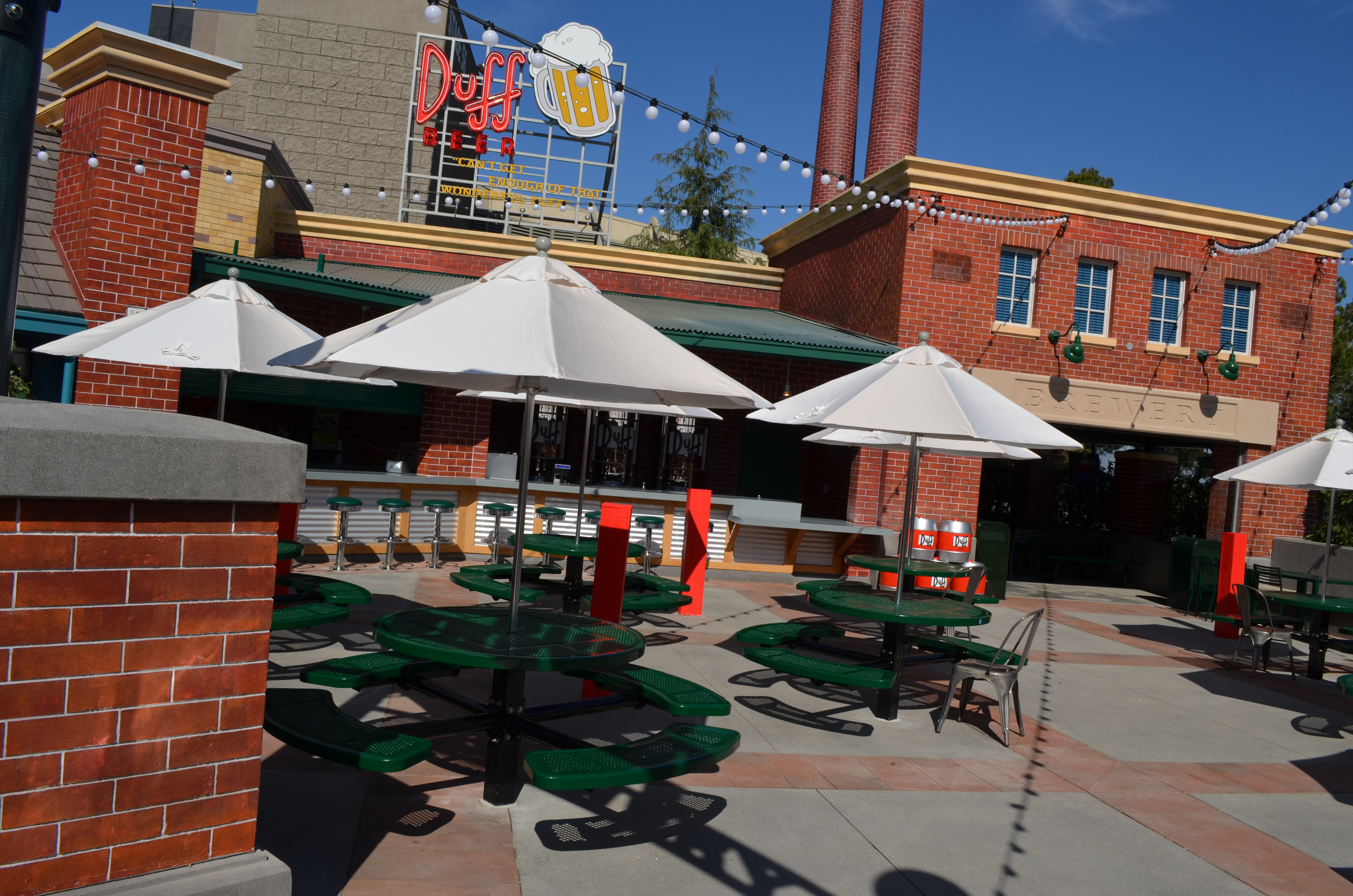 Across the street are five venues. Phineas Q. Butterfat’s Ice Cream, Luigi’s Pizza, Suds McDuff’s Hot Dogs and Duff Brewery are located in a heavily remodeled food location. The Duff Brewery is located in the Duff Beer Garden, also home to the Bumblebee Man’s Taco Truck. The ‘Seven Duffs’ are adorning the small planter at the beer garden’s entrance. The beer garden is lovely, but is quite small.