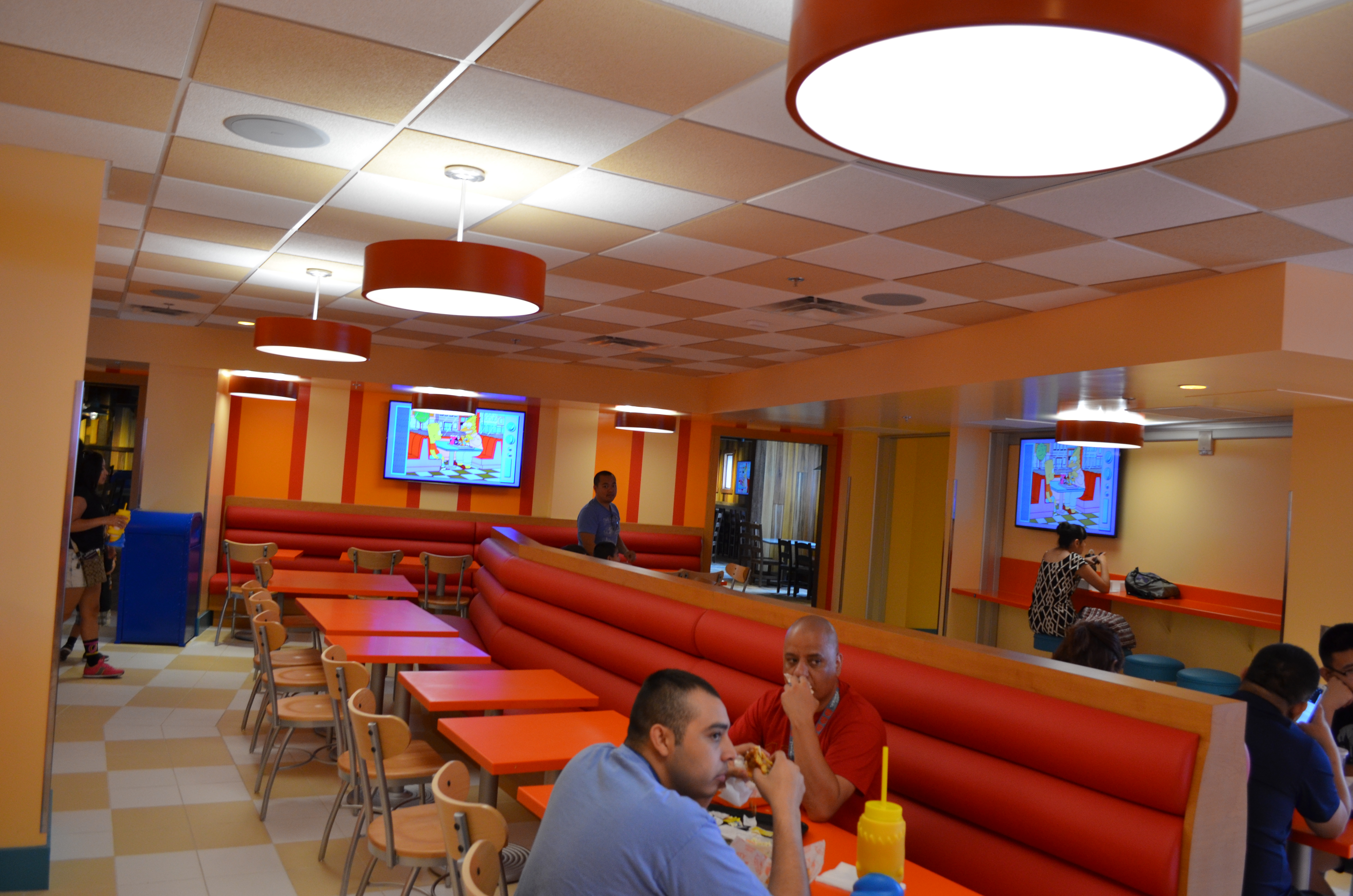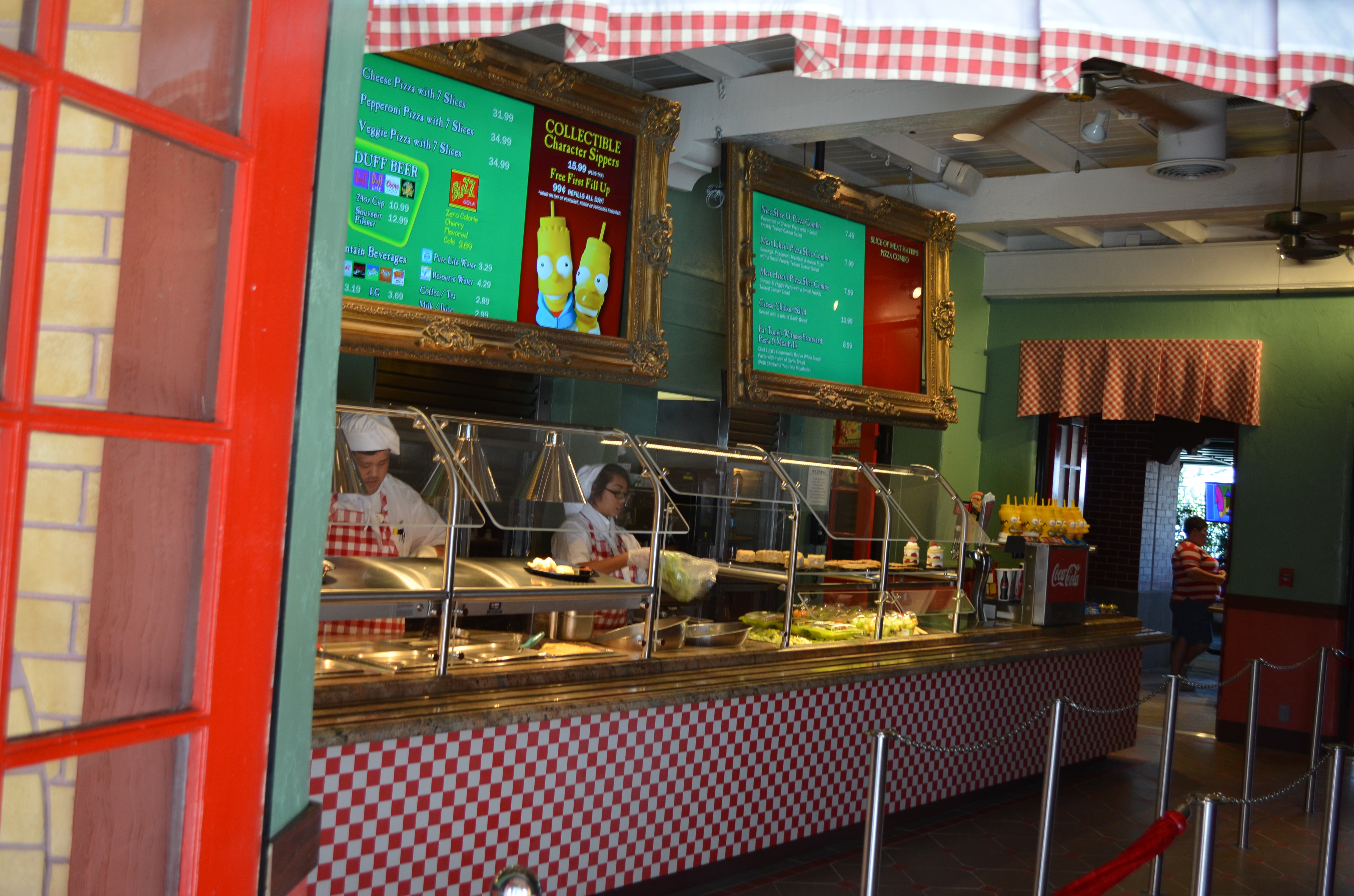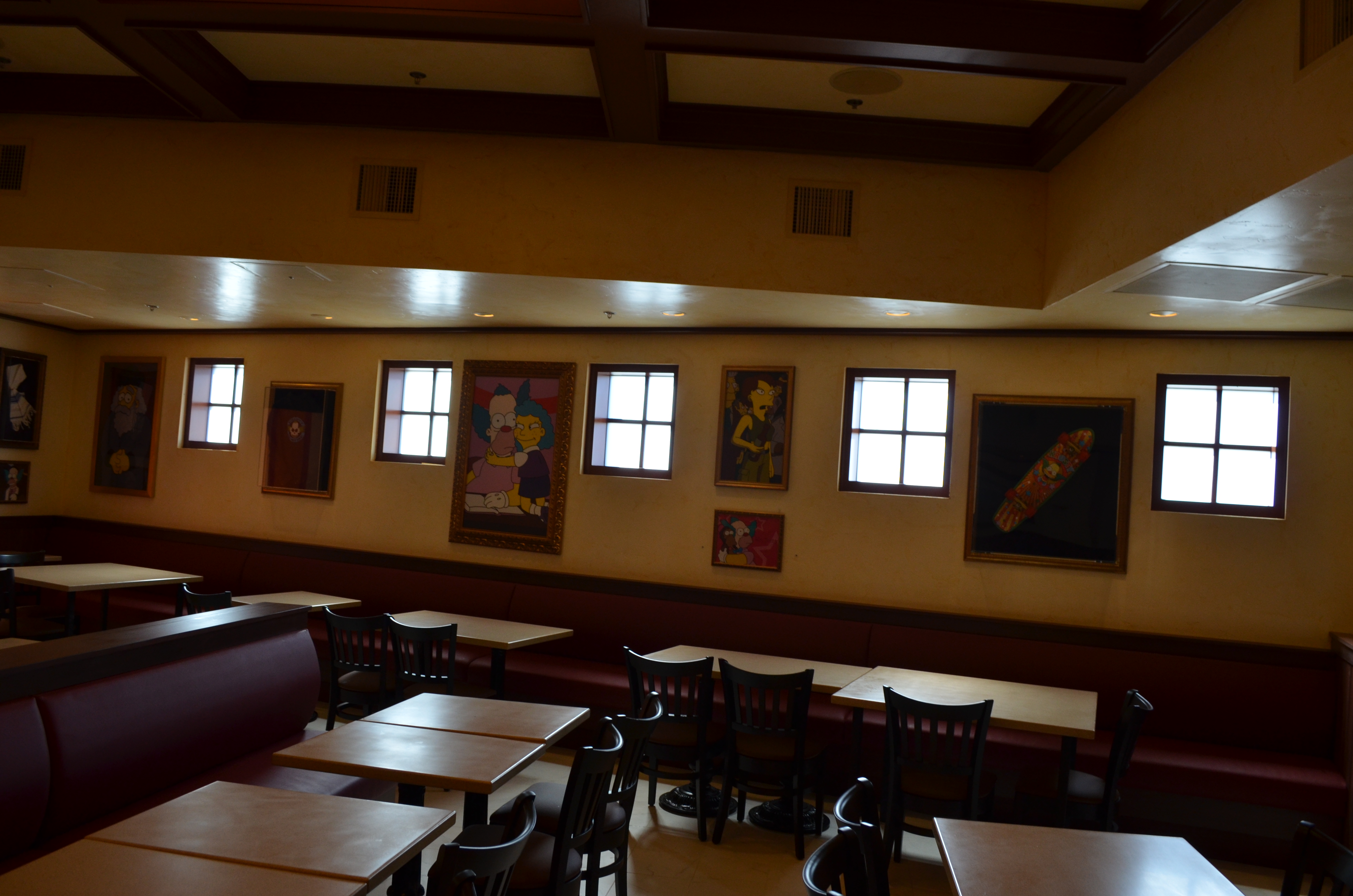 This section of the restaurants is the lesser themed of the two, more of a generic fast food look, but video monitors play a long look of Simpsons clips to keep you entertained.