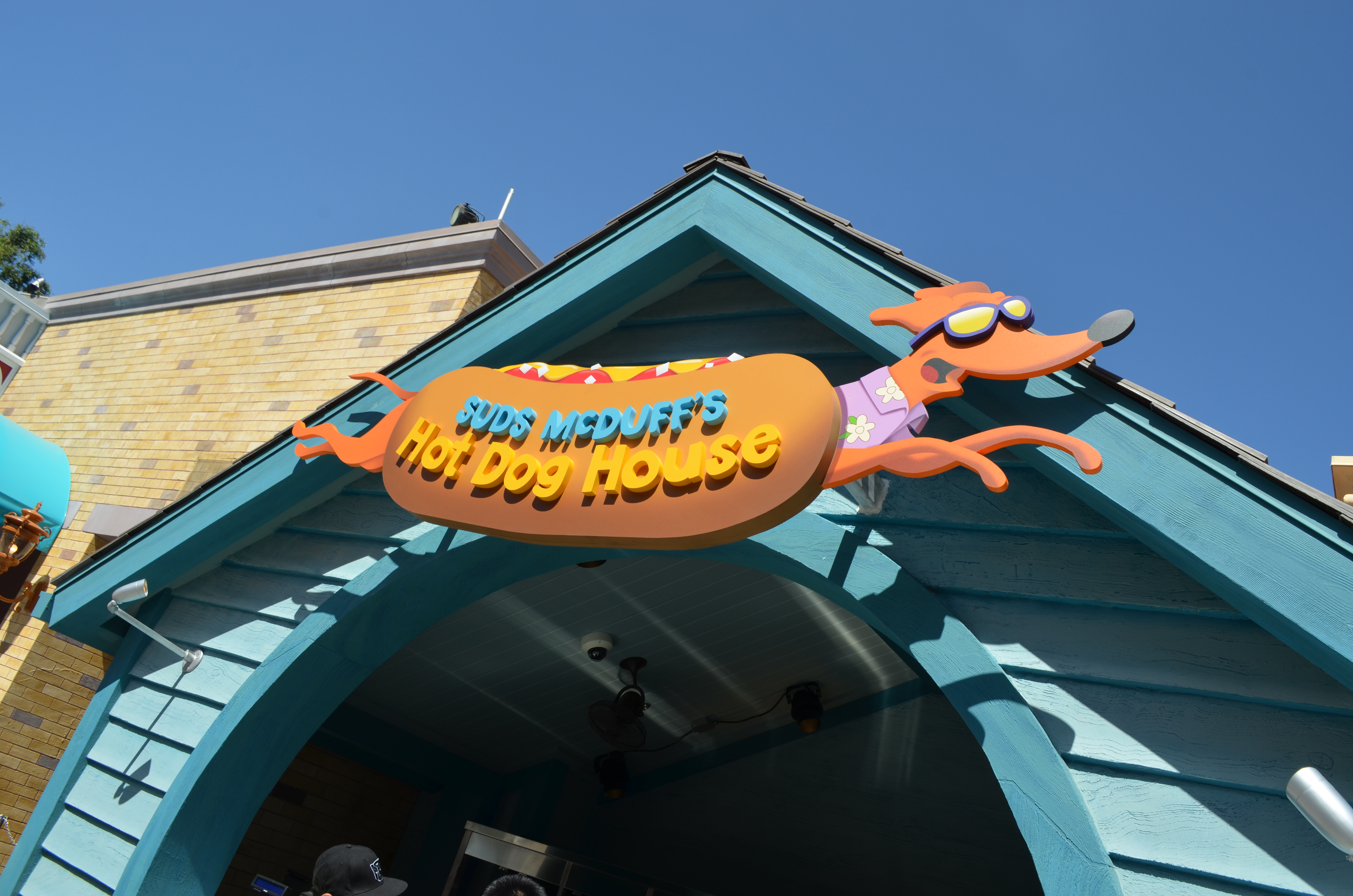 The main building of Springfield is the new, two story food court. The north side is home to some other dining locations in a refurbished venue. The main building’s two level design is disguised with multiple iconic facades from the series. Krusty Burger and Cletus’ Chicken Shack are the two dining venues in the building and Moe’s Tavern is the fully themed bar. All of those venues are connected on the ground floor.