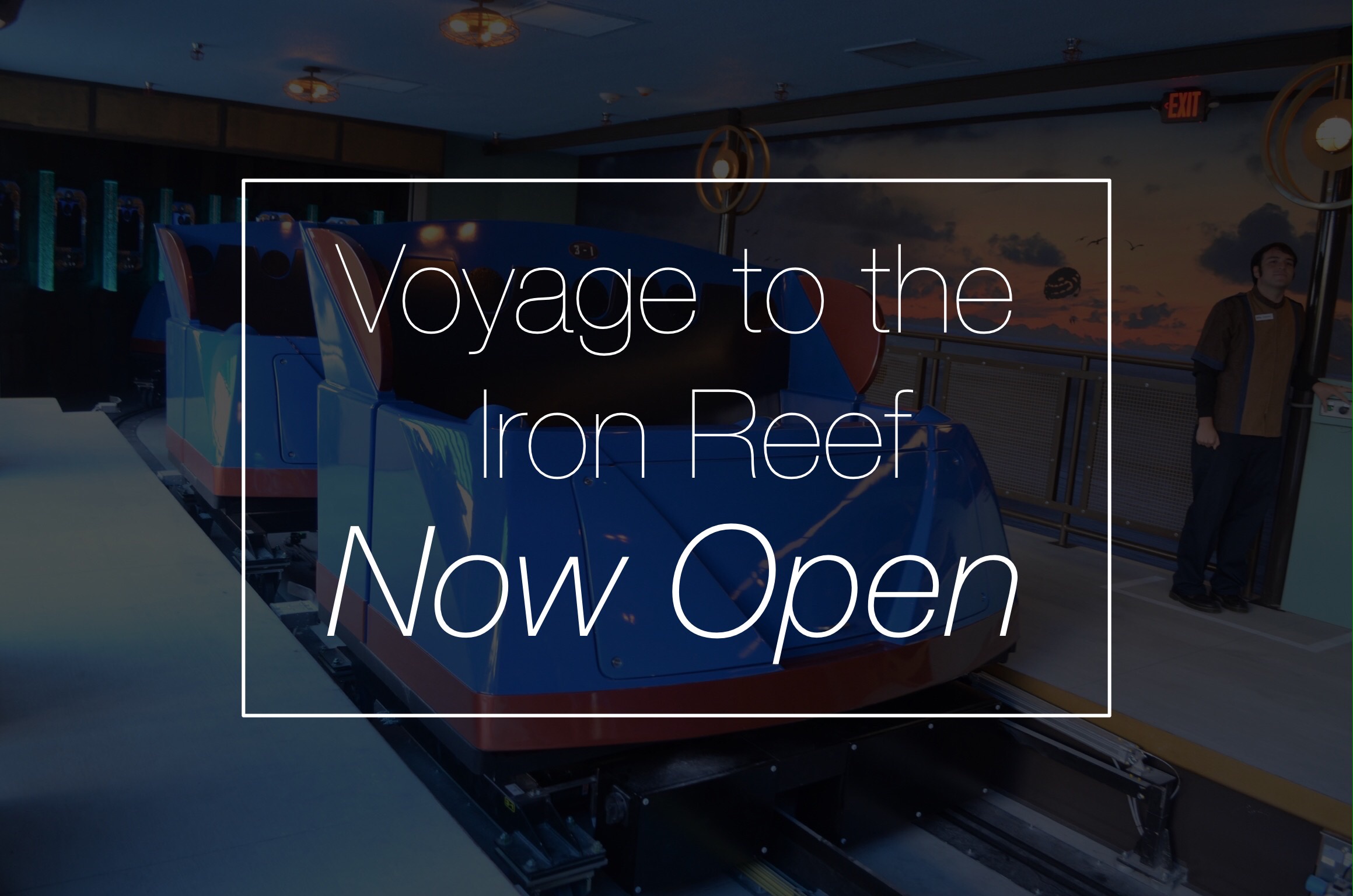 Knott’s Berry Farm has added yet another new attraction for the third year in row. Voyage to the Iron Reef is their newest. The interactive, media based dark ride takes riders to the ocean floor to destroy an aquatic army that is feeding off of the park’s coasters. The ride features 11 screens from 20 to 70 feet long. There is a total of 44 1080p HD projectors that help create the 3D realm.